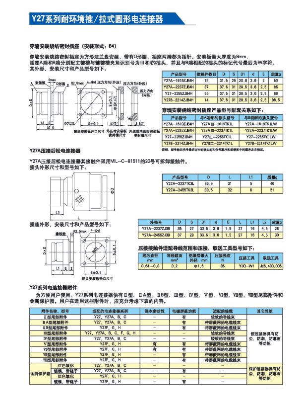 Y27A-2237ZJB4H穿墻式真空密封接插件,插座過壁,最大8mm,兩頭插針,中間采用特殊加工工藝,氣密封性能強(qiáng),與插頭推拉連接,方便快捷。