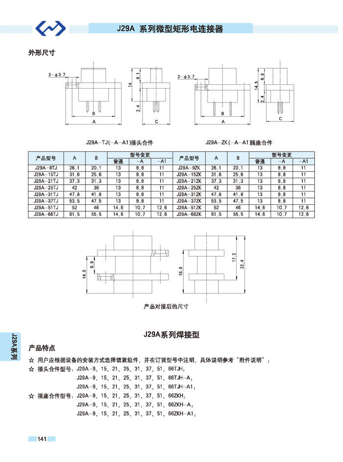J29A系列微矩形接插件,是J27系列矩形電連接器的升級(jí)產(chǎn)品,麻花插針,接點(diǎn)間距1.91mm,排距1.65MM,體積小,重量輕。是微矩形電纜式插頭型號(hào)種類多的產(chǎn)品。