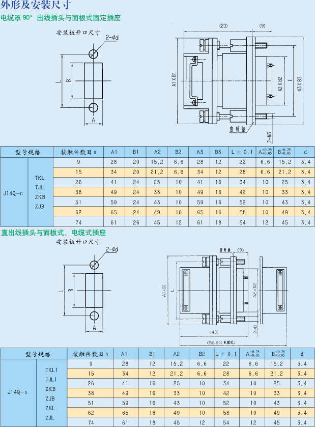 J14Q-26ZJB/TKL矩形插頭插座,矩形連接器,螺釘鎖緊機(jī)構(gòu),電纜罩直出線、90°出線,端接形式壓接