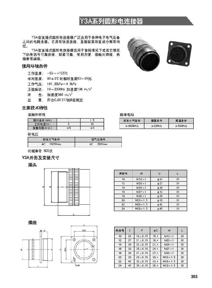 Y3A系列防盲插圓形航空插頭廣泛應用于各種電子電氣設備之間的電路連接。它具有快速連接,直插鎖緊和直拔分離等特征。適用于盲插情況下的電訊號可靠連接,鎖緊要靠,使用方便,接觸對焊接,熱縮套管端接。