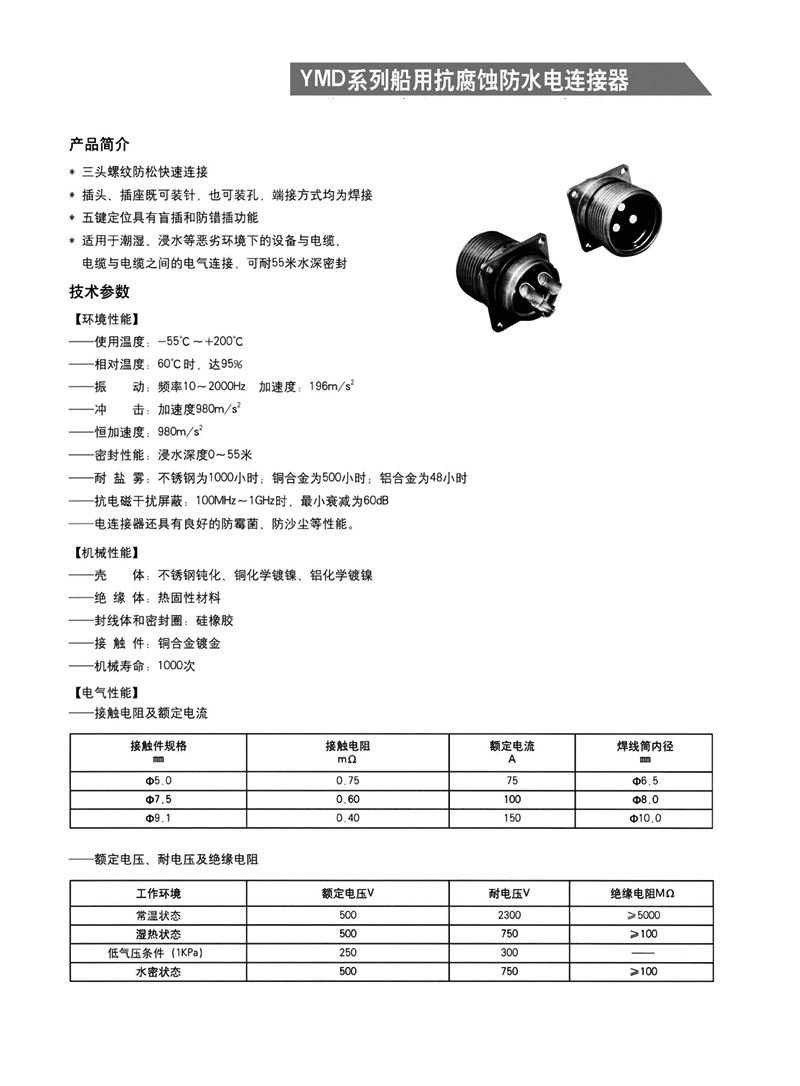 • YMD系列船用抗腐蝕防水大電流連接器