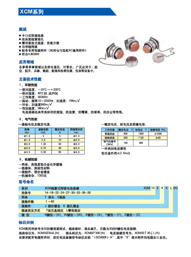 Y55M(XCM)系列螺母拼緊式航空插座,采用卡口式快速連接和分離;雙曲面線簧插孔,插拔柔和;螺母緊固式插座,安裝方便;接觸件為焊接式,配有專用電纜附件;同時(shí)也可選配XC通用附件,符合GJB2889標(biāo)準(zhǔn)。廣泛應(yīng)用于航空、航天、兵器、艦船、總參等軍事領(lǐng)域以及郵電通訊、計(jì)算機(jī)、航海和各種儀器、儀表等設(shè)備中。