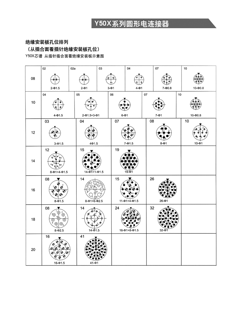 Y50A圓形90°彎針PCB印制板連接器,是Y50系列里一種型號,插座上插針無需焊接被槽,不能焊線。是加長或者帶90°彎腳的插針,可以直接與PCB印制板連接,客戶在使用之前要與廠家聯(lián)系,根據(jù)廠家提供提供的尺寸開孔,這種制作合適用于空間小,儀器小的設(shè)備。