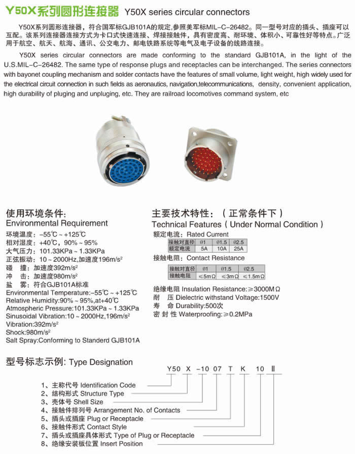 Y50X系列航空電連接器和河南中航光電生產(chǎn)的產(chǎn)品是執(zhí)行一個(gè)軍標(biāo)GJB101A-97標(biāo)準(zhǔn),并參照MIL-C-26482標(biāo)準(zhǔn),產(chǎn)品質(zhì)量是100%,在軍械上拉得出,打得響,經(jīng)得起嚴(yán)峻考驗(yàn)。