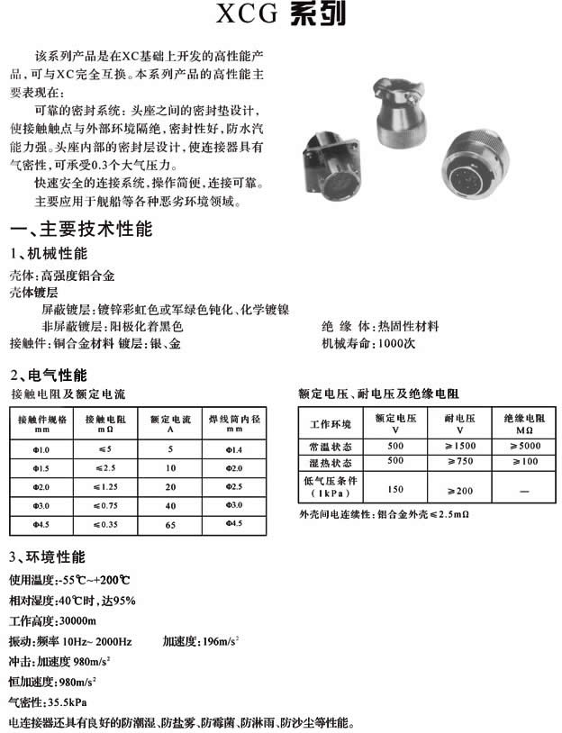 【XCG14F1D3/K1P3】線簧孔船用電連接器,航空插頭是在XC基礎(chǔ)上開(kāi)發(fā)的高性能產(chǎn)品,可與XC完全互換。該系列產(chǎn)品的高性能主要表現(xiàn)在: