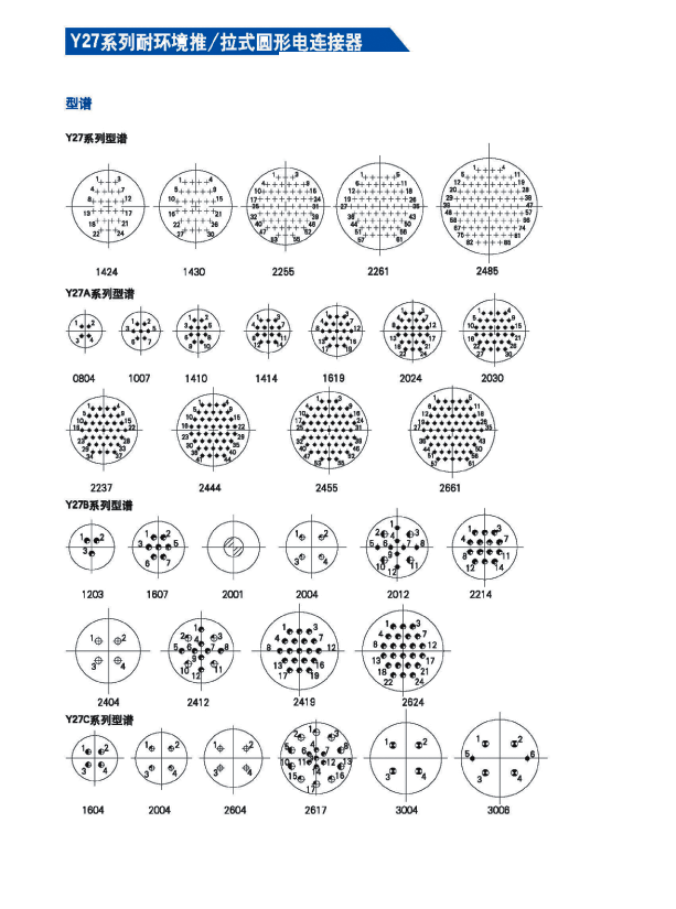 Y27系列耐環(huán)境推/拉式圓形電連接器 ,采用推/拉式鎖緊機(jī)構(gòu),材料為鋁合金、海軍黃銅和不銹鋼三種,共有13種殼體號(hào),1~121等18種芯數(shù),有3~250A等10種電流規(guī)格。Y27A系列電連接器有壓接后松的品種。Y27F、G、H系列電連接器適用于艦船環(huán)境,具有防水密封的性能。Y27H系列電連接器采用雙曲線插孔。符合國(guó)家軍用標(biāo)準(zhǔn)GJB2905-97,性能參照美軍標(biāo)MIL-C-38999。 該系列航空電連接器連接和分離方便、快捷,適用于盲目插合或其他插合情況,具有抗振動(dòng)、防鹽霧、防電磁干擾的性能,有防塵、防雨及氣體密封等品種。Y27系列電連接器廣泛應(yīng)用于航天、航空、船舶、通訊等領(lǐng)域。