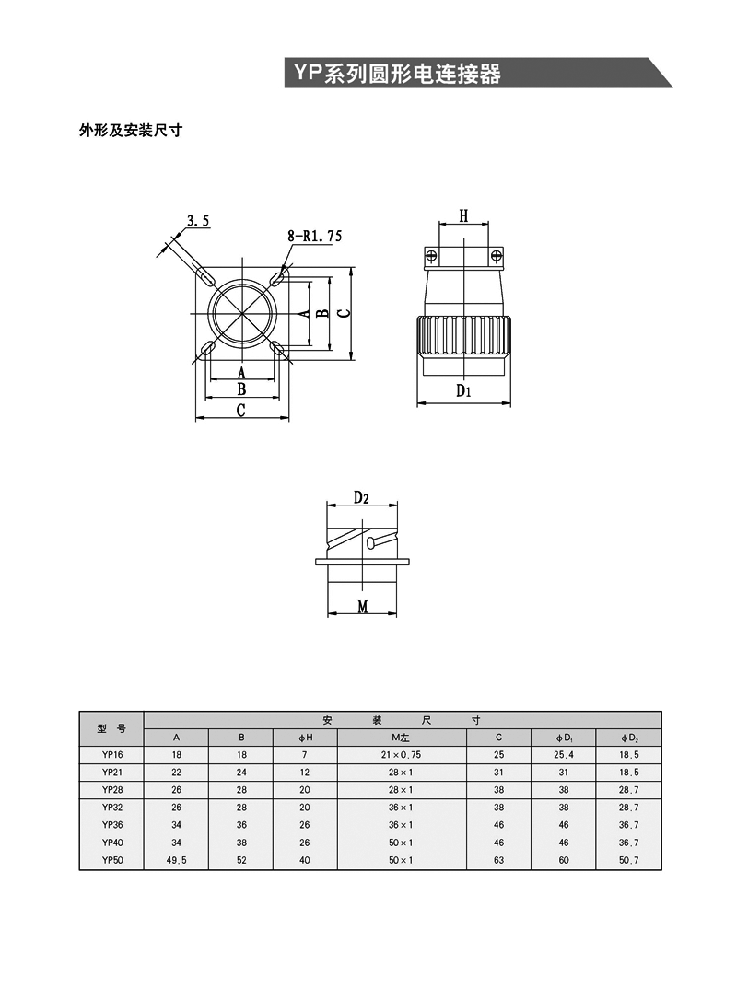 YP系列圓形航空插頭